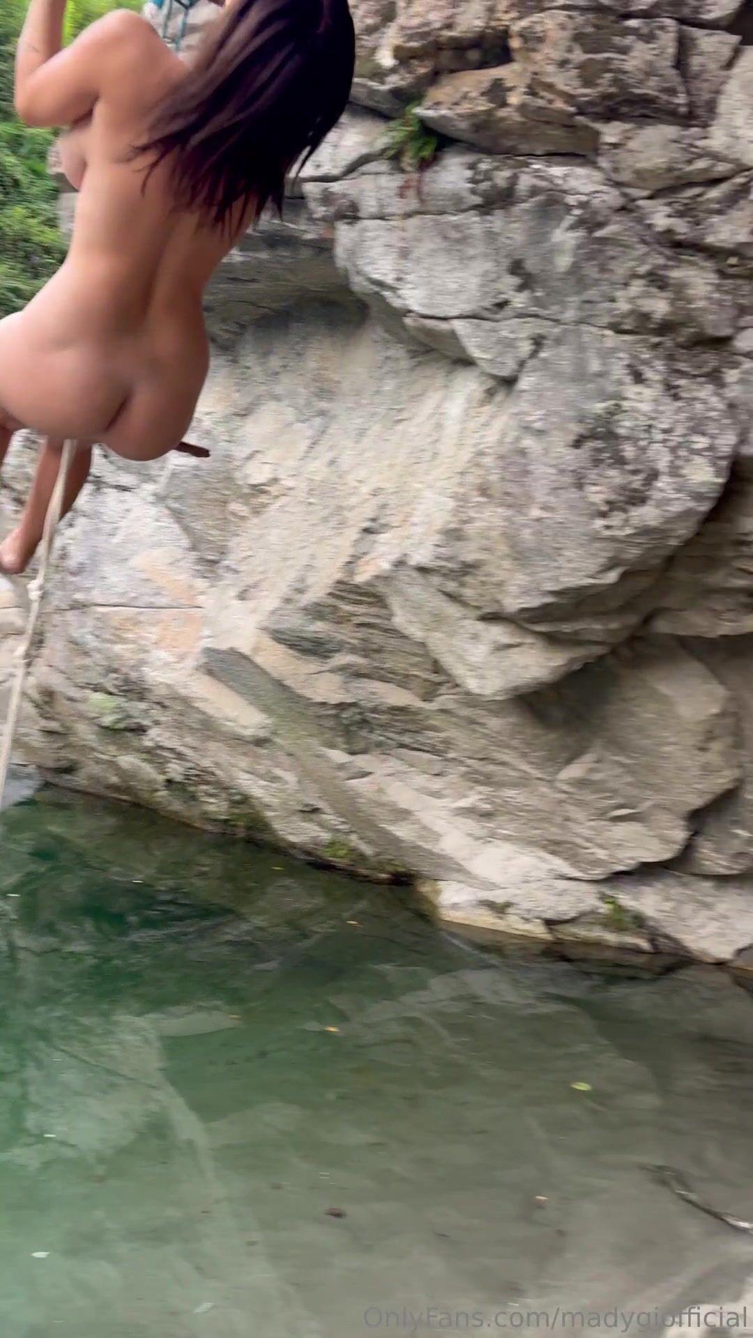 Mady Gio The Rope Middle Of Tits Completely Nude Over The Water Leak